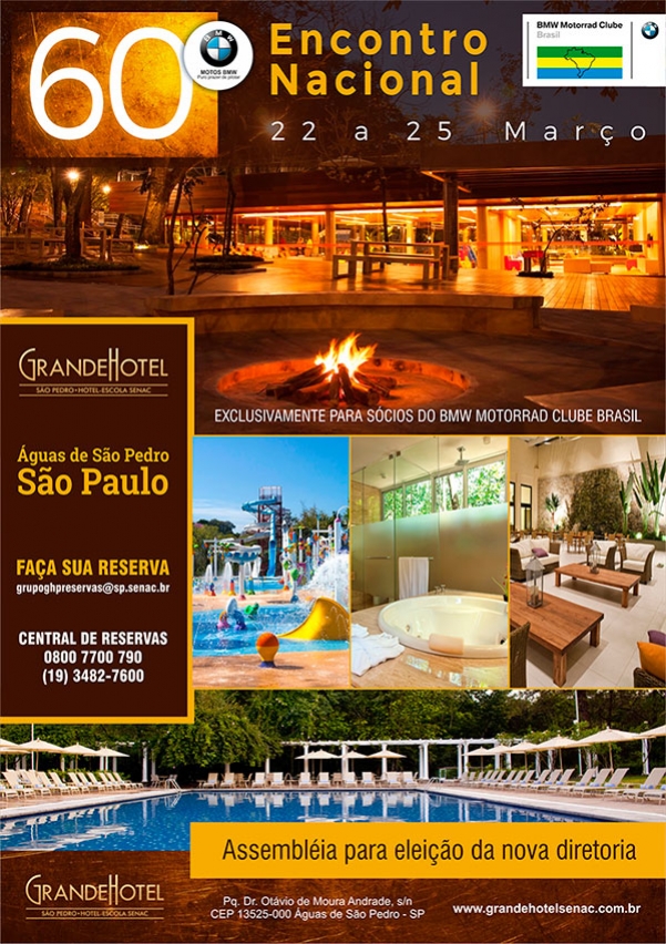 O próximo encontro do BMW Motorrad Clube Brasil já tem data marcada, e será nos dias 22 à 25 de março de 2018 na cidade de Águas de São Pedro - SP, no Grande Hotel.