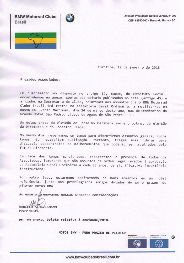 Ata da Assembleia do Conselho Deliberativo realizada em 24 de março de 2018, elegendo a nova diretoria.