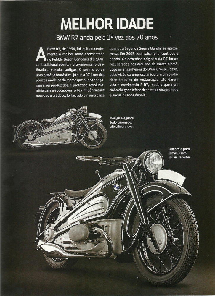 A BMW R7 foi eleita recentemente a melhor moto apresentada no Pebble Beach Concours d'Elegance, tradicional evento norte-americano destinado a veículos antigos.