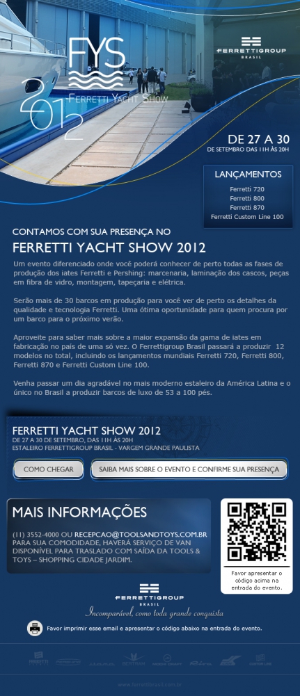 Um evento diferenciado onde você poderá conhecer de perto todas as fases de produção dos iates Ferretti e Pershing.